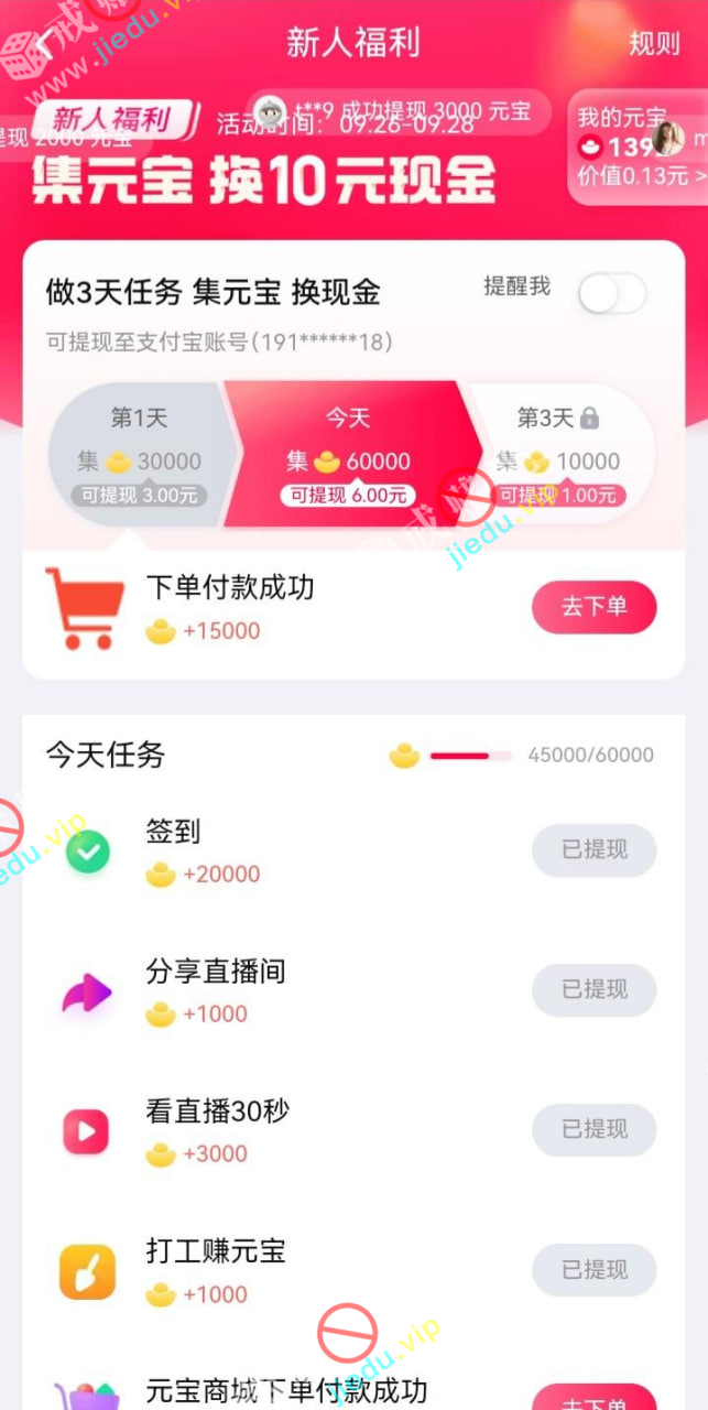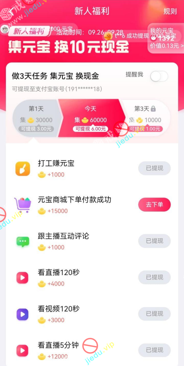 应用商店搜索点淘下载点主页新人福利完成任务领。