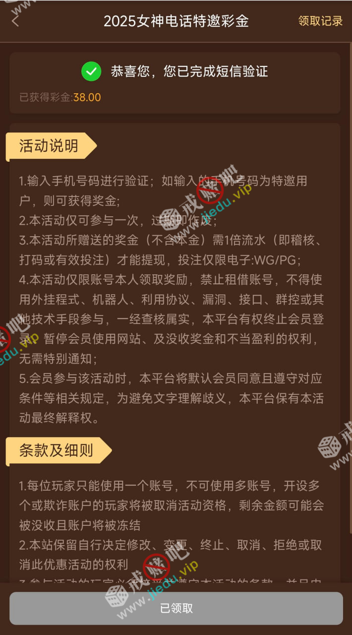 到账情况: 白嫖即可(勿充值)