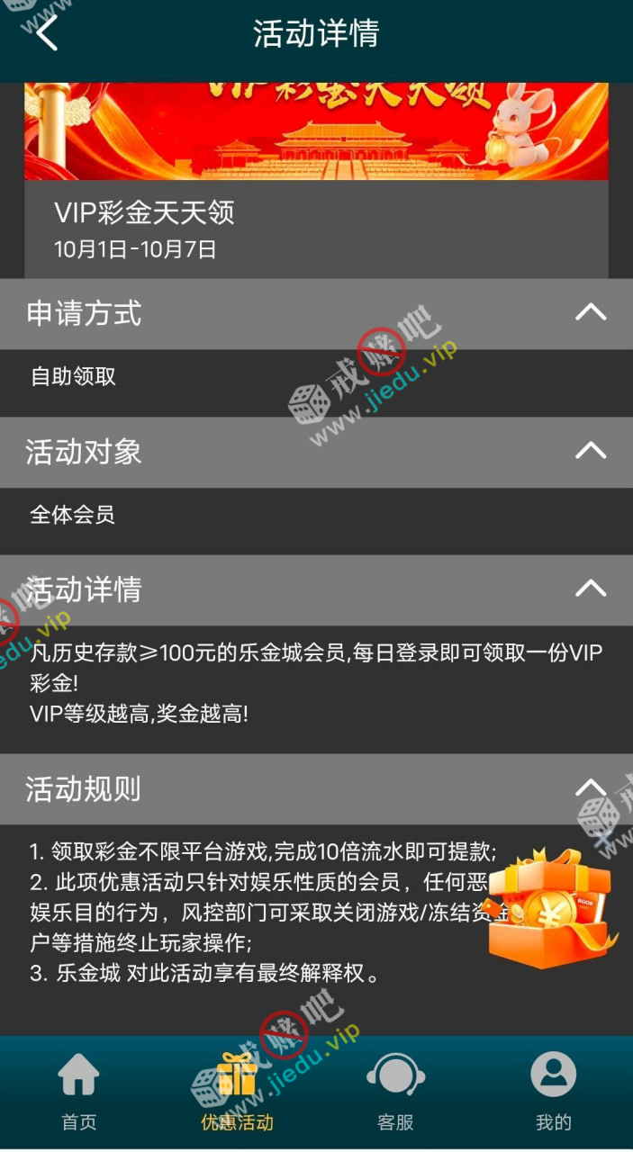乐金城国庆每日领8块,领了3次了,打过首存的兄弟可以看看。