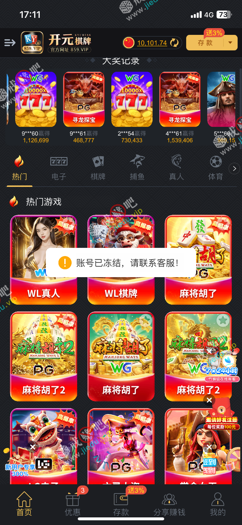 老哥们不要充值,100块钱打pg打到一万多,提现直接冻结了