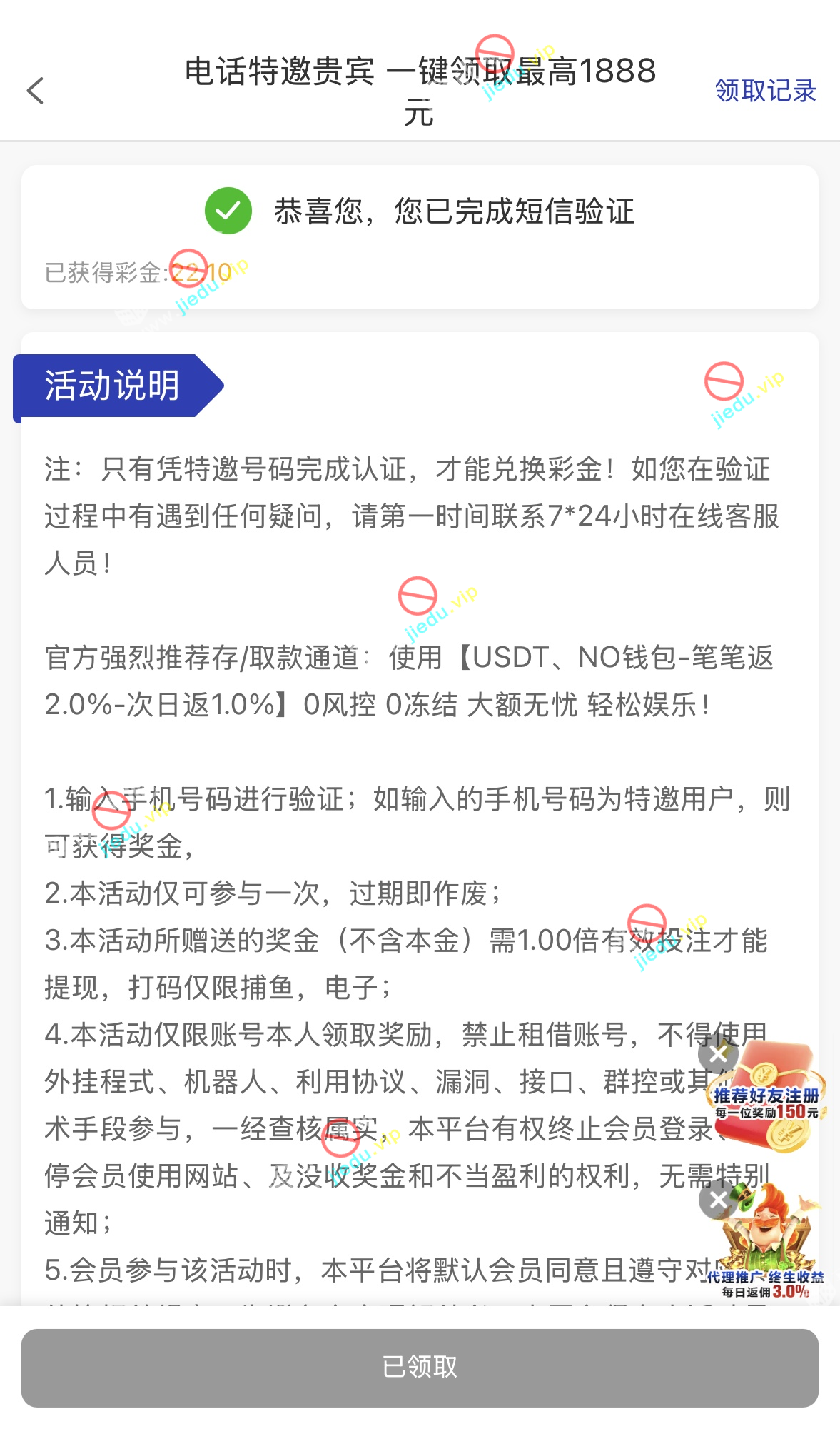 到账情况: 白嫖即可(勿充值)