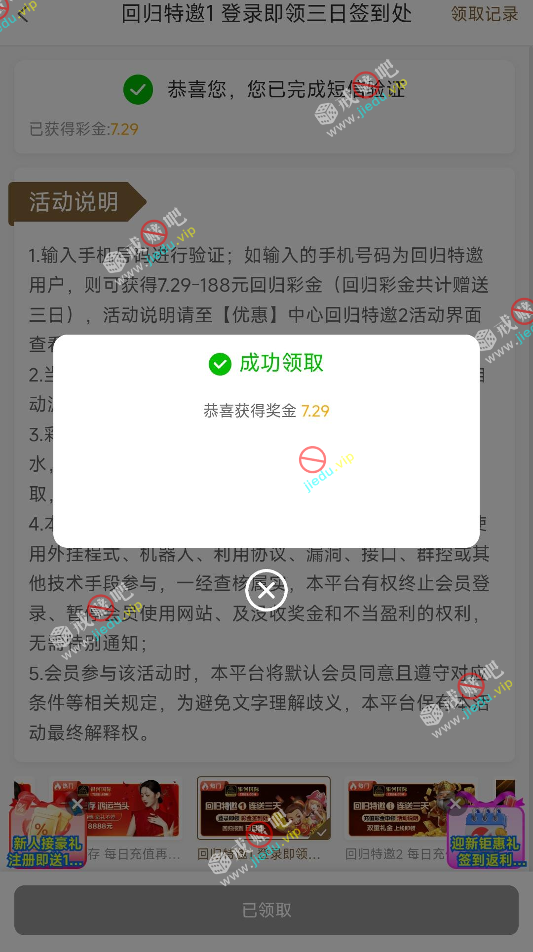 到账情况: 白嫖即可(勿充值)