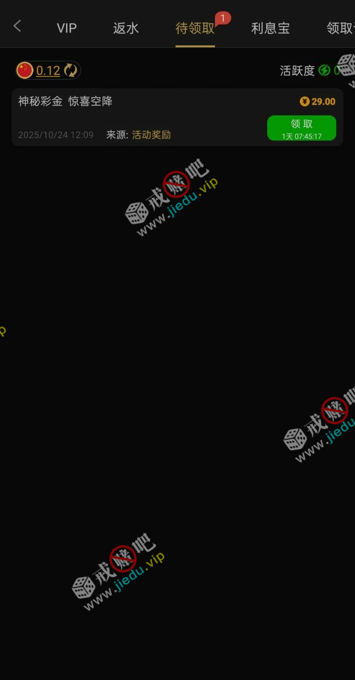 登录账号有神秘彩金送,昨天就有了,待领取里。