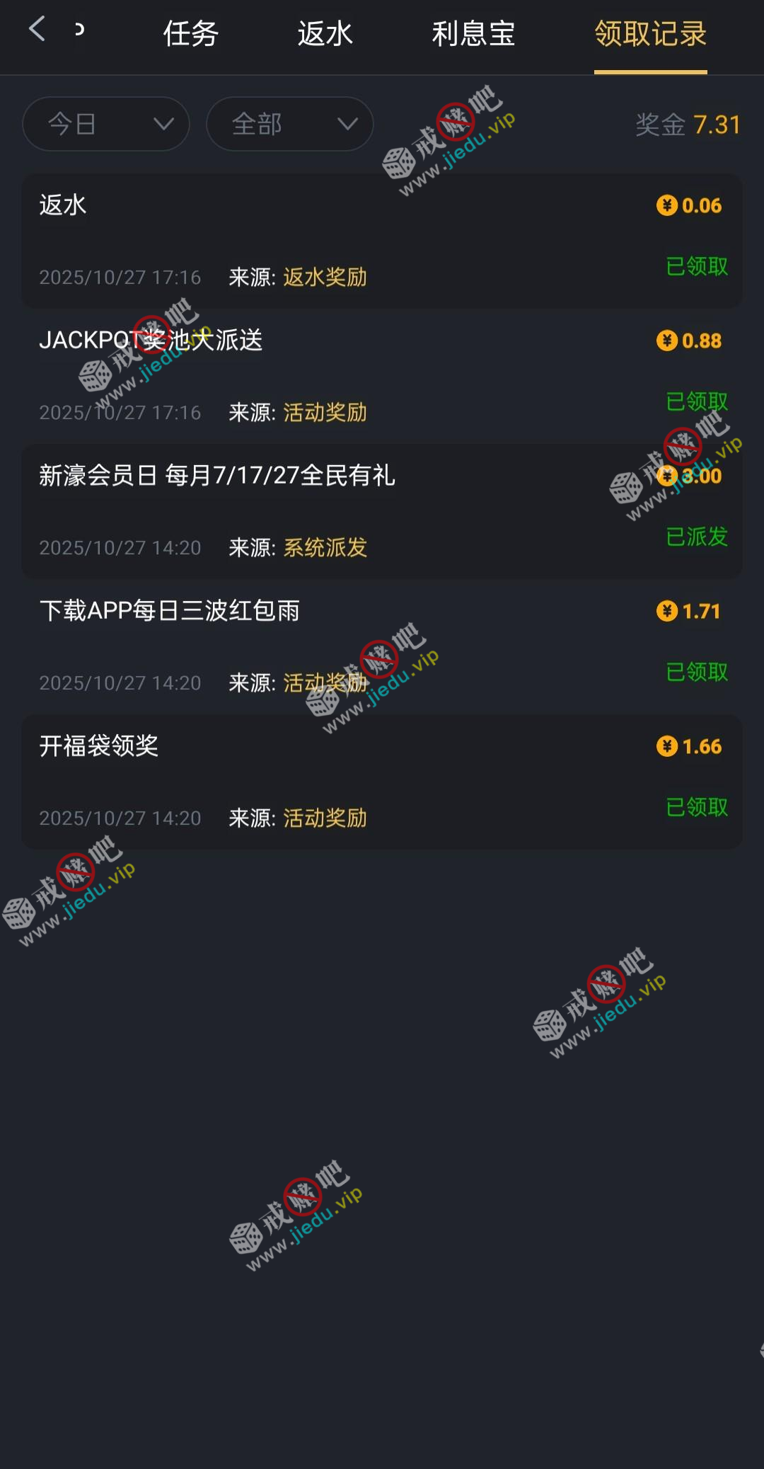 说的是电话彩金,但是登录上去就有显示逢 7什么的彩金,好像人人都会有的吧,登录上线看看。