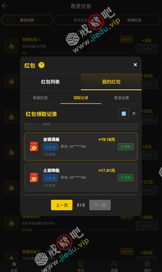 天胜娱乐每天可以领取一次红包,打到100就可以提款 ,有大包,看名字快去领 。