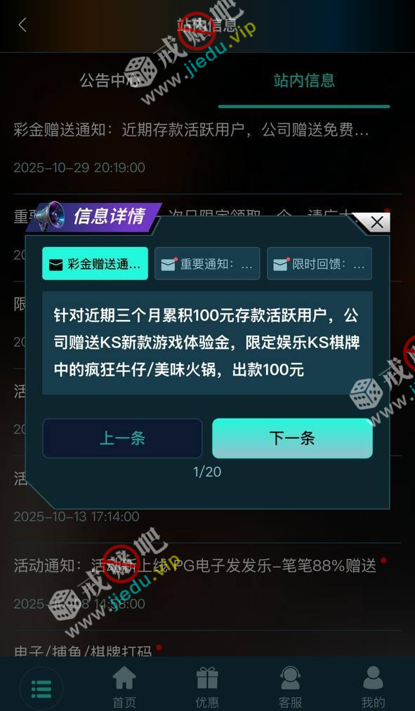 近三个月存款累计100以上的,登陆上去就有新游戏体验彩金,只能玩新出的那两个游戏。有号的去看看。