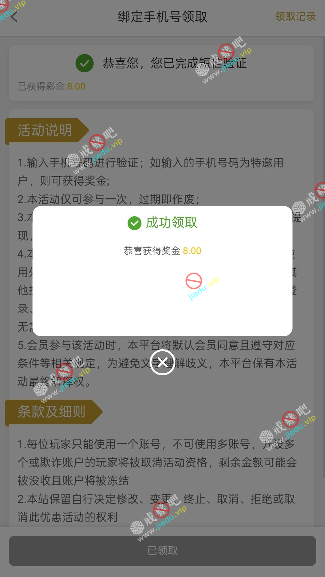 到账情况: 白嫖即可(勿充值)