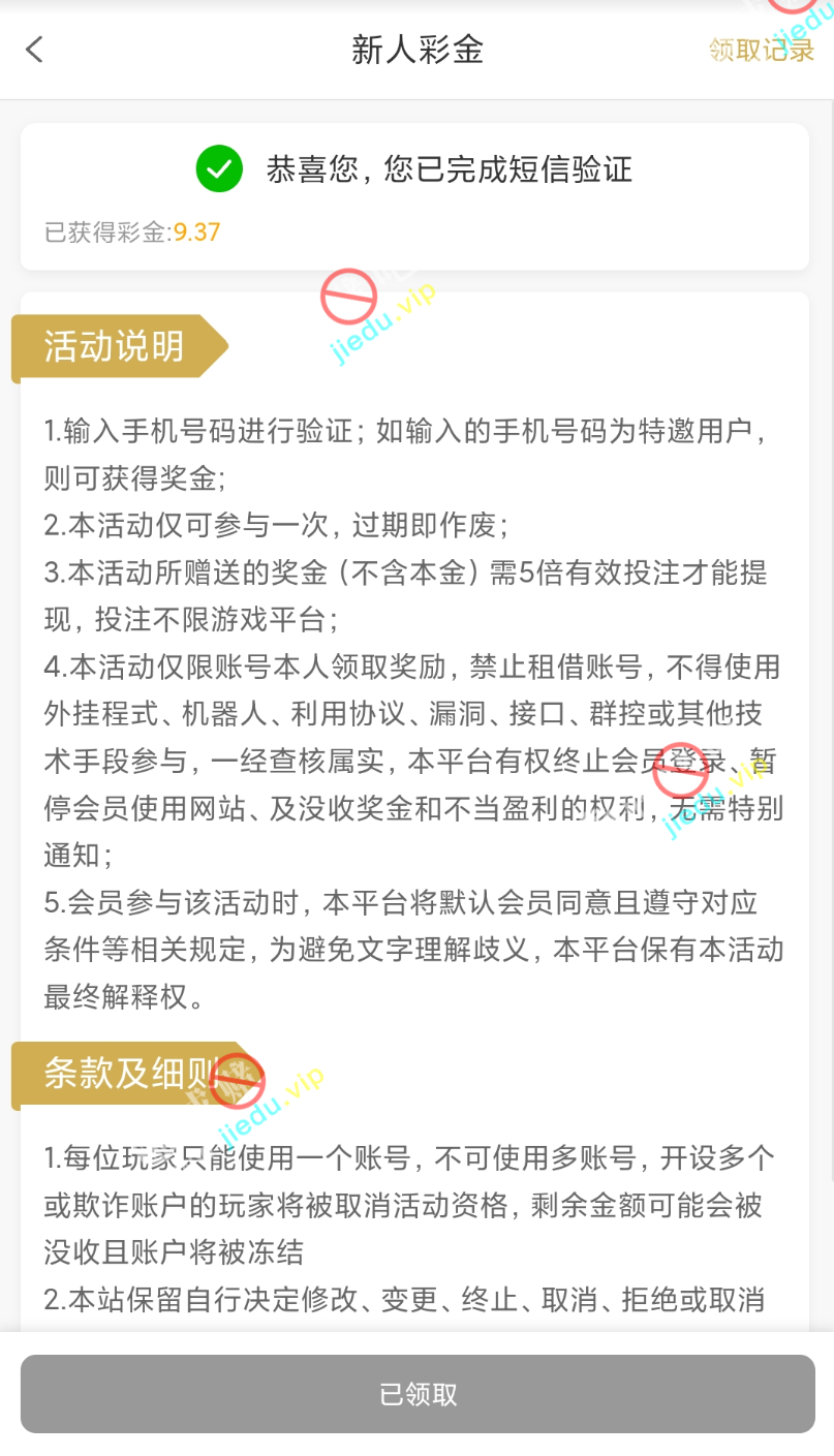 到账情况: 白嫖即可(勿充值)