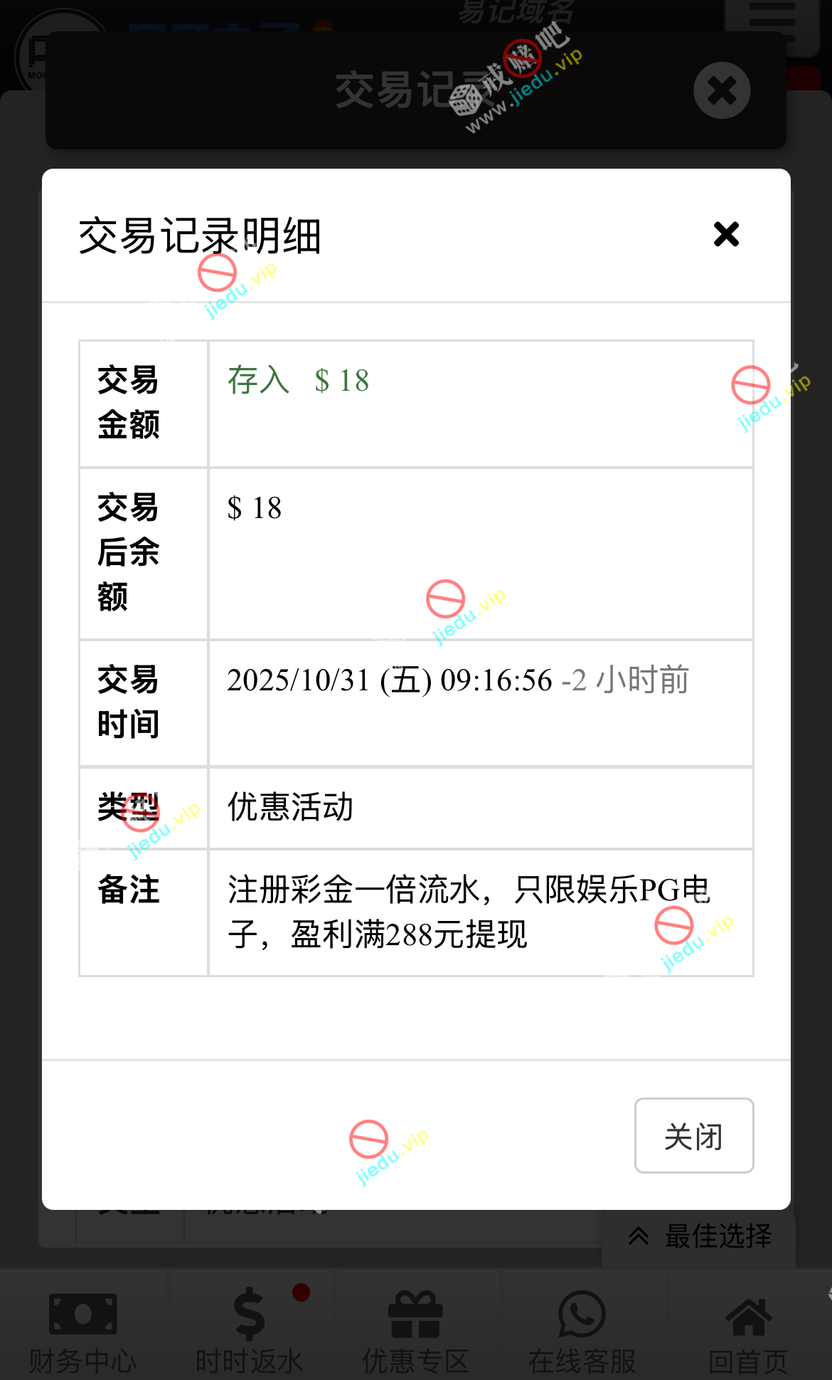 电话说我注册送 18,满 288 可以去款我已经去款到账了,你们可以去碰碰。