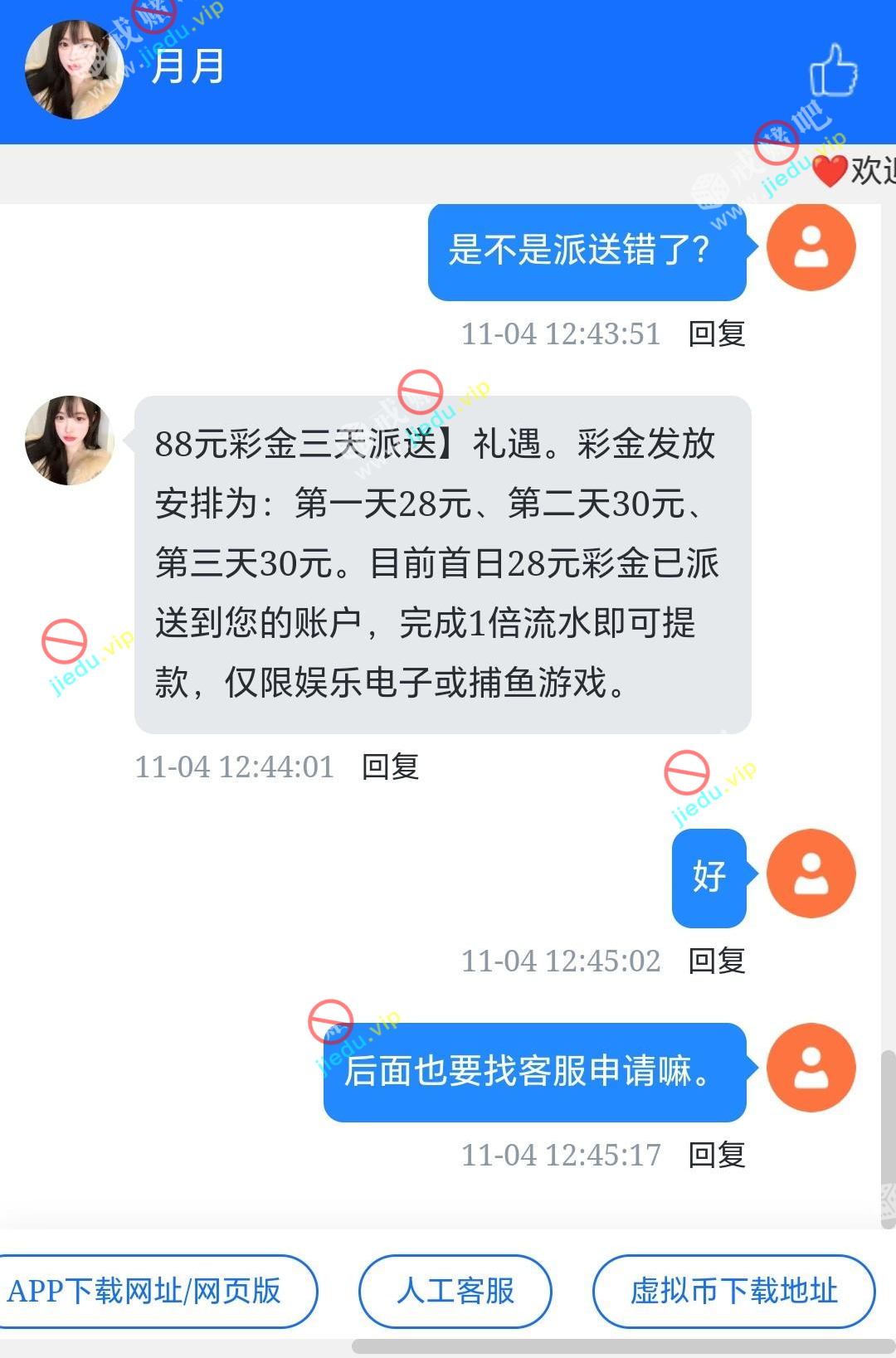 送88找在线客服申请。彩金发放安排为:第一天28元、第二天30元、第三天30元,我是接到电话的,可以碰瓷试试看。