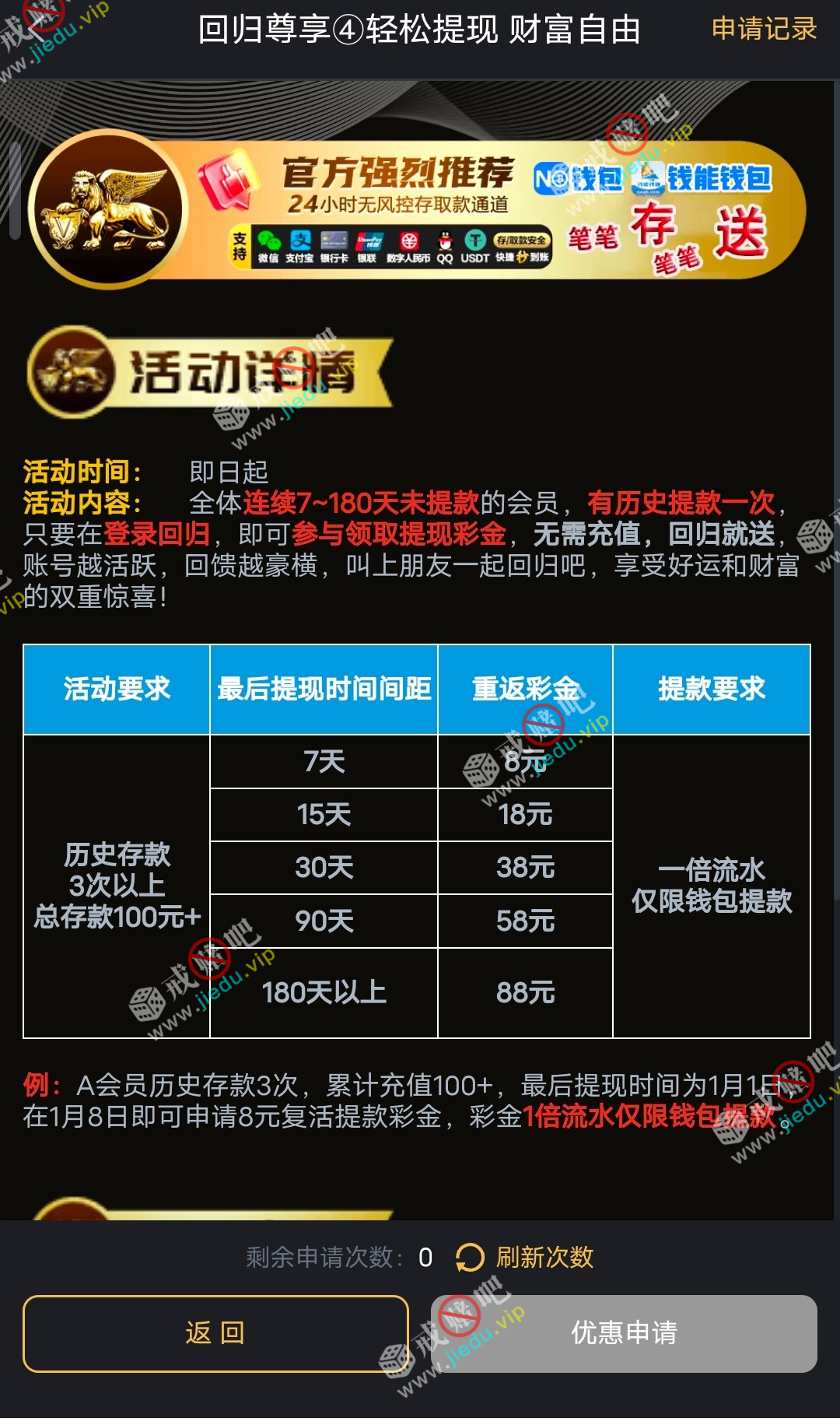 老友回归彩金,具体看图碰瓷即可,历史上 3 次以上总存 100 + 老哥上!
