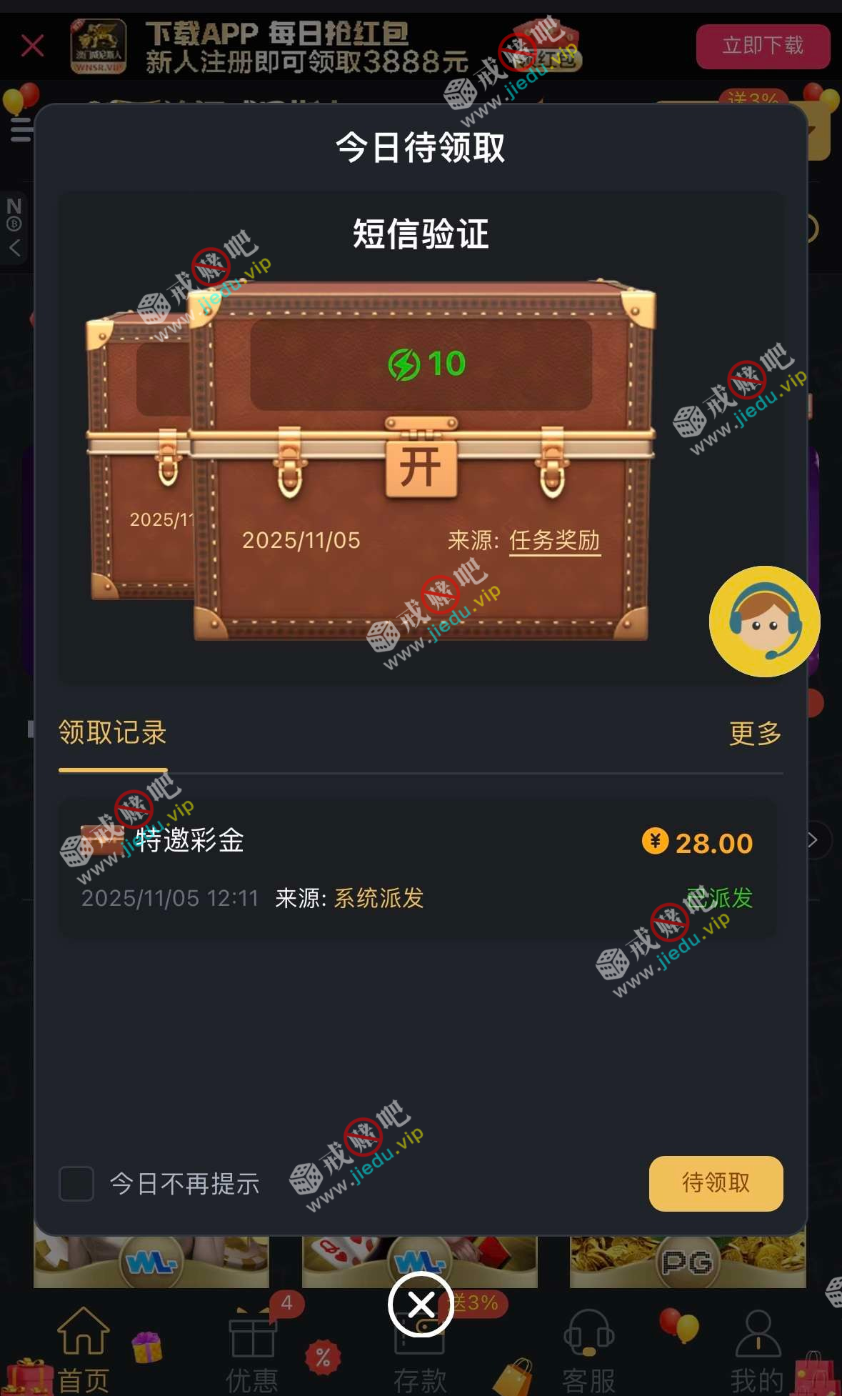 打电话来的自动送的,是特邀的话 10~ 30 分左右自助动送的,没有就无视,领到就评论里图贴下。