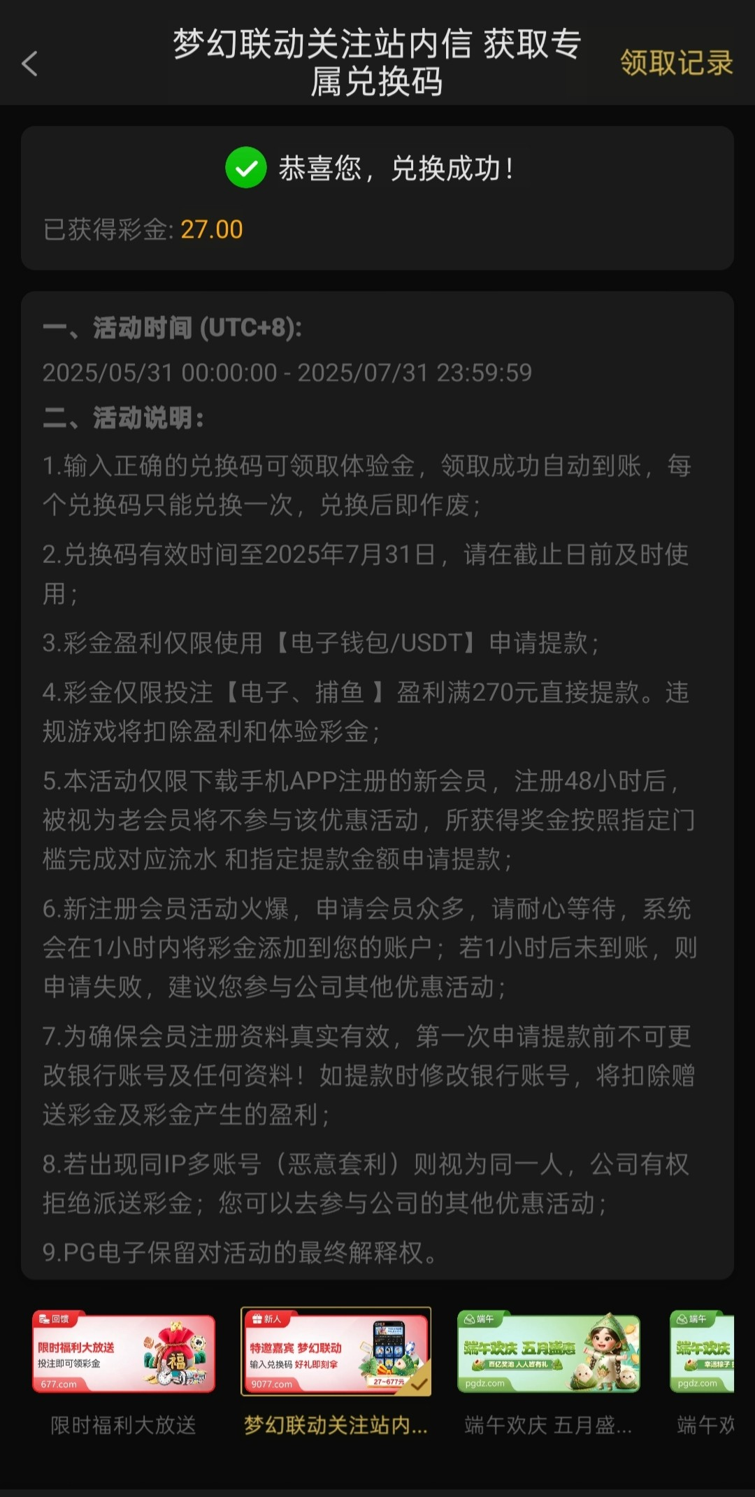 刚才登录上去看到有个站内信 有个合作平台会给个注册彩金码