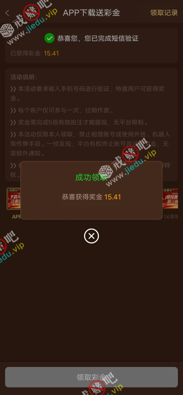 领到就领到了 ,没领到别叫,彩金5倍流水才可以提现 我没打出来,就看各位赌神的操作