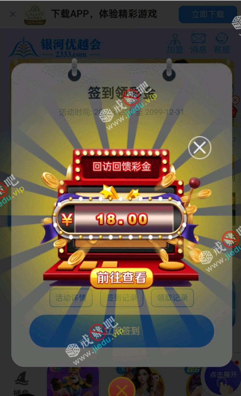 接到电话登录弹出来电话回访彩金,有账号登录看看,送没送!