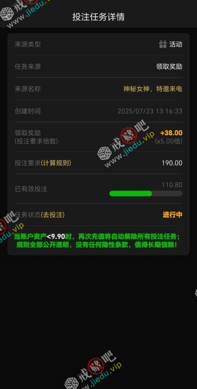 到账情况: 白嫖即可(勿充值)
