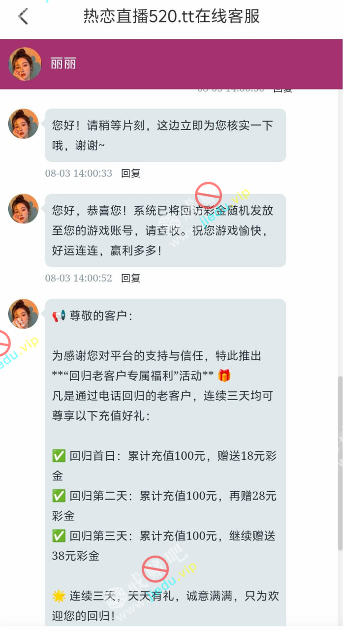 彩金不用找那个萤火虫专员要,直接找客服申请就行,就说是电话彩金,只不过比那个萤火虫专员的送的少,我两号都领到了。