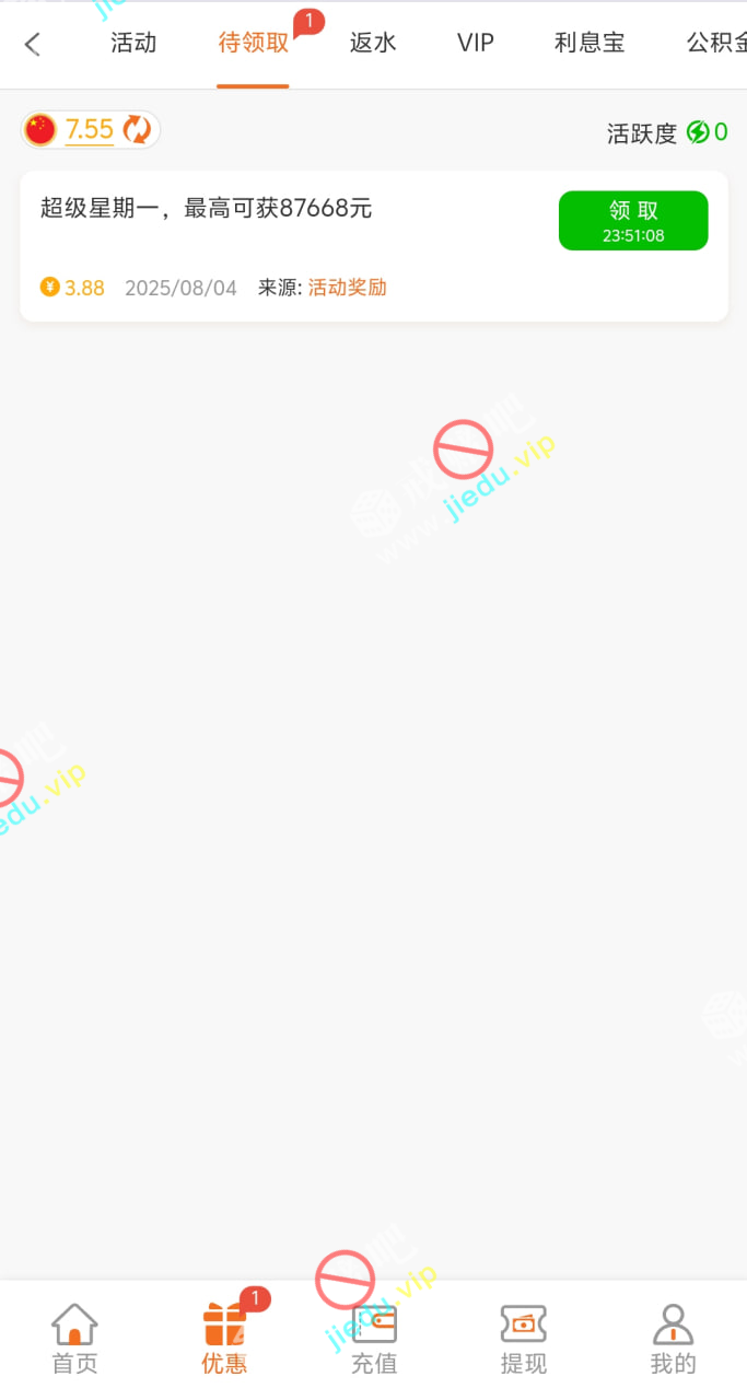 到账情况: 白嫖即可(勿充值)