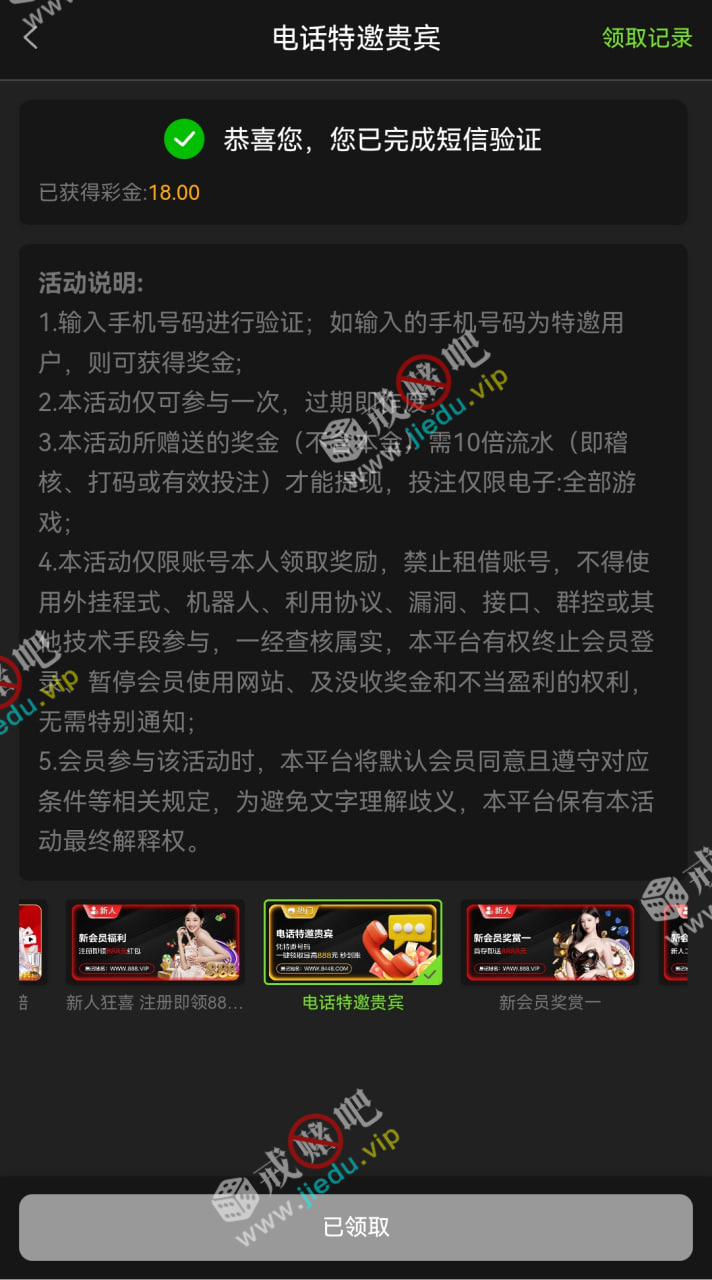 发短信验证,送18,我这新号都有,应该大家都会有,试试碰碰看。