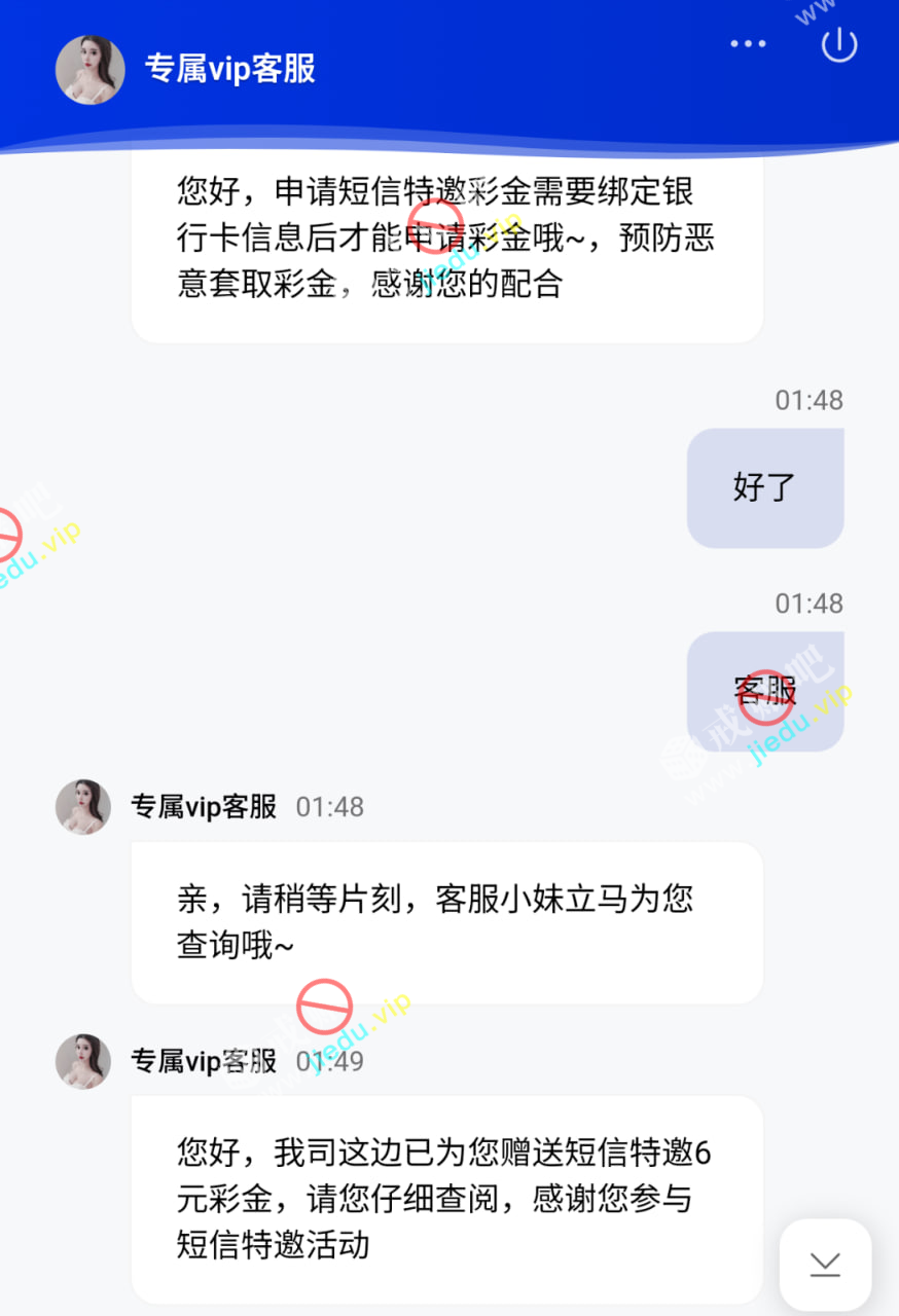 直接找客服说领取短信彩金就给我了,不知道人人都有没有,可以去碰碰看。