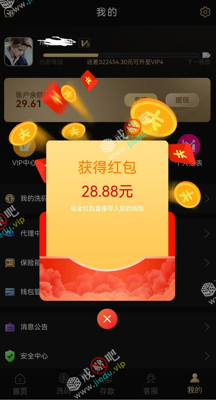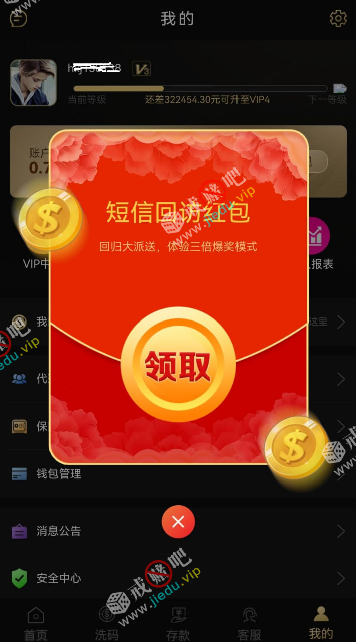 挂壁了,就去找玩过的台子,发现有个短信回访彩金,领到了 28,你们也可以去看看。
