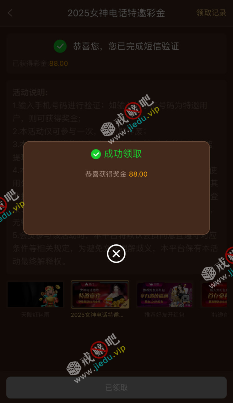 88 几率多的哈,能说的验证码就去验证领取下,都不需要接到电话,不一定每个人都有,到时没碰到别来骂我。