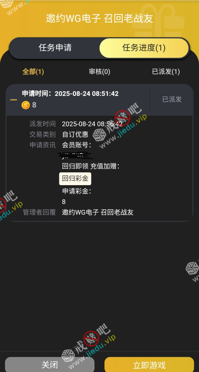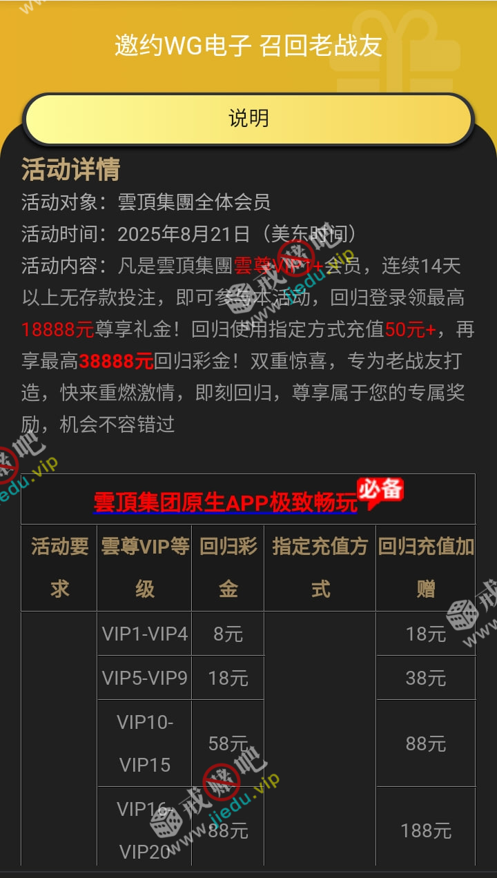 今天上去看了下活动突然看见了这回归彩金。哥们去看下。