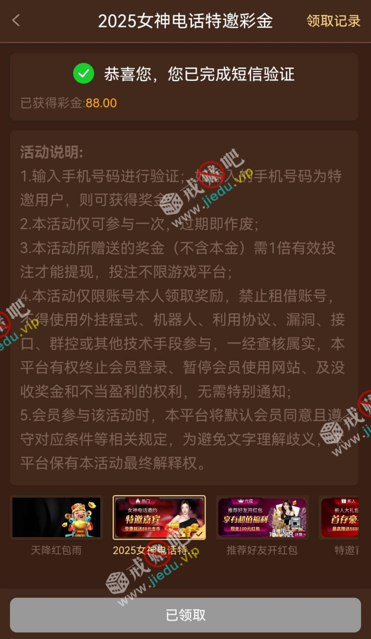 哥们查看一下有没有这条信息,有就直接输入手机号试试看,没收到信息也可以去碰碰,领到的评论下,没领到就别骂我。