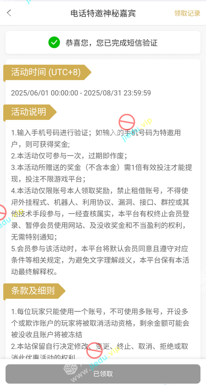 手机号能收到短信就可以了,不需要特邀,如果验证成功了就彩金到了,验证成功了就是特邀了。