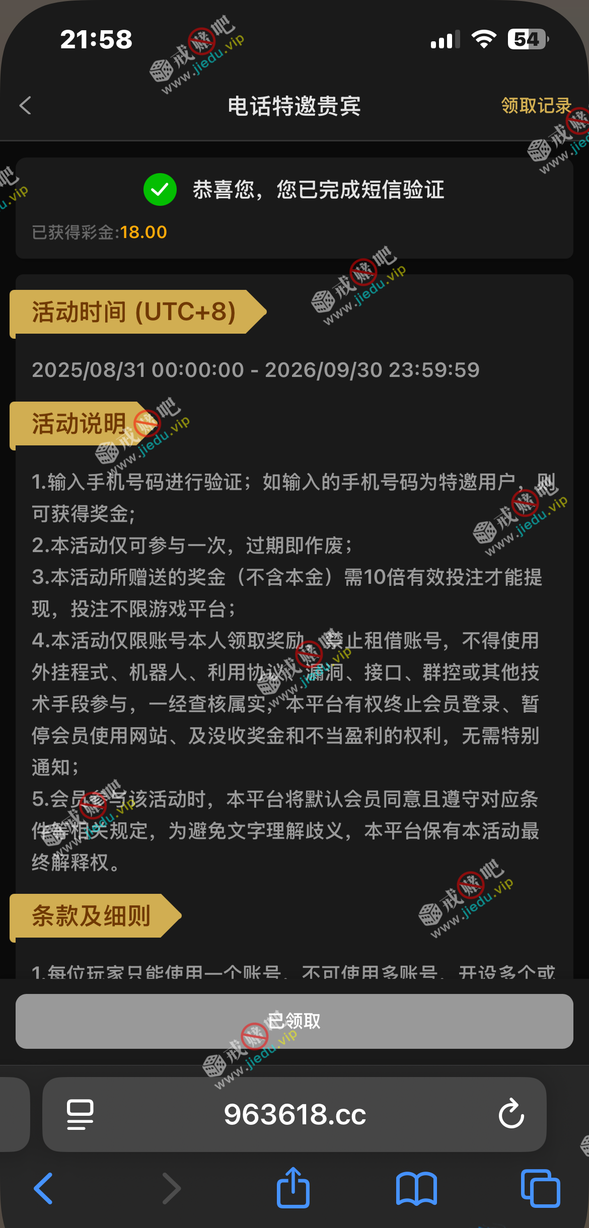 特邀自助领取彩金,领了18