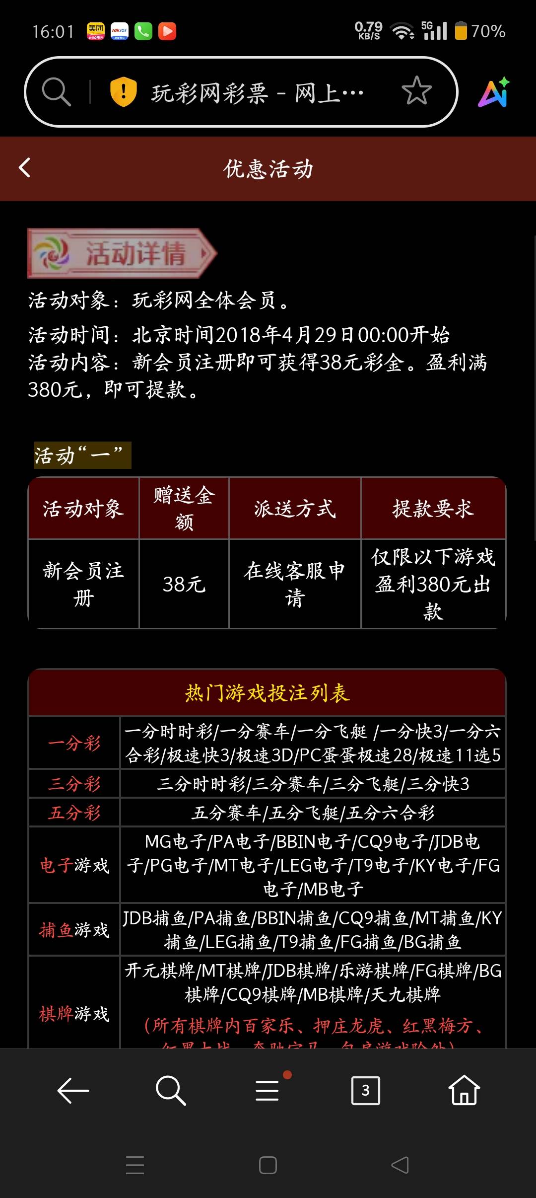 玩彩网新用户注册就送38 下载APP加赠18