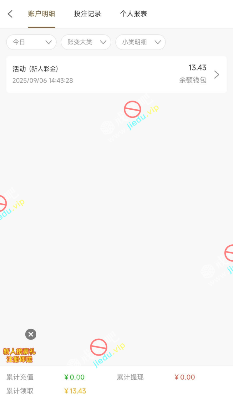 接到电话,手机号注册彩金直接到号上,金额随机的。