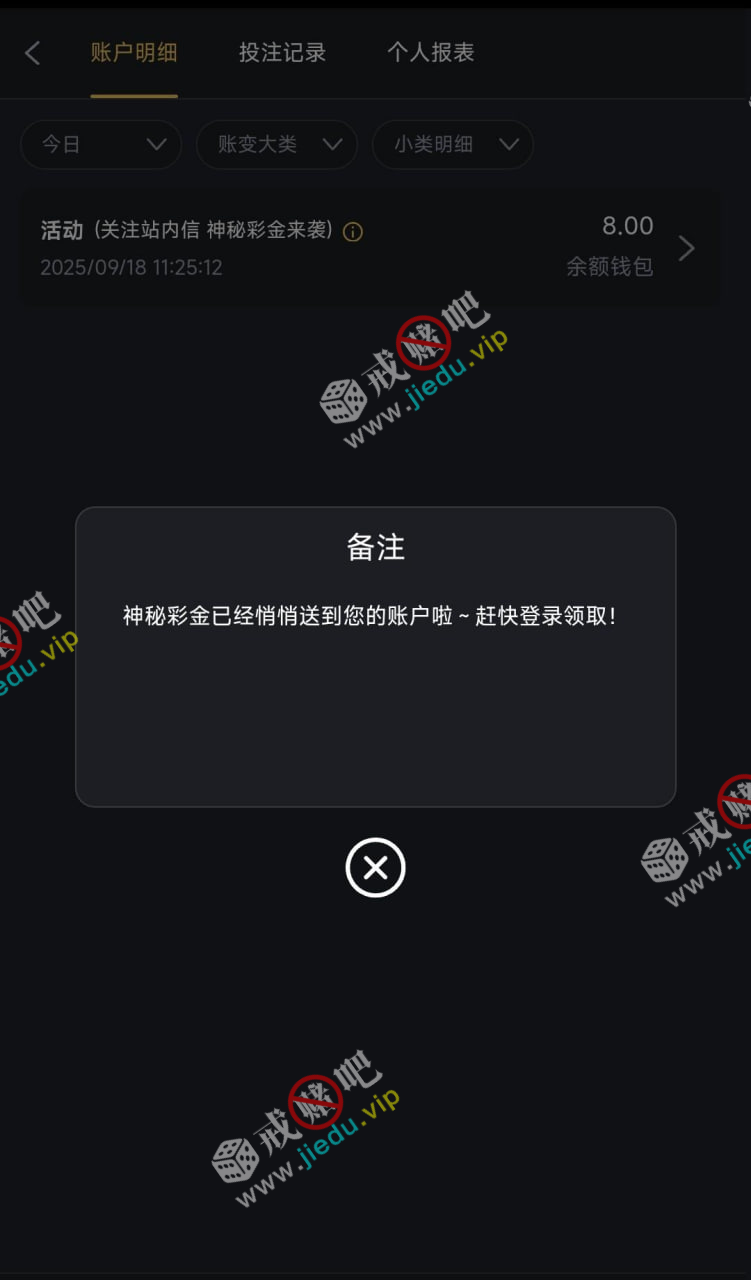 没登录的太久了,无聊上号就看见 8 块的神秘彩金,老用户去!