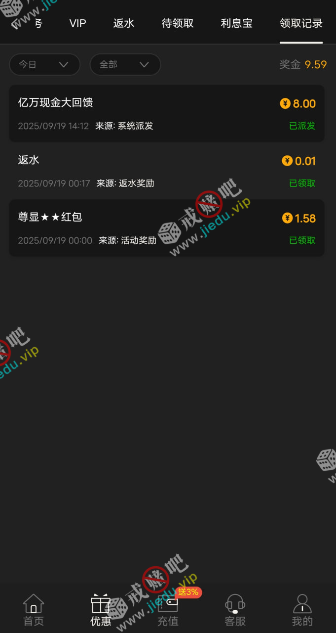 每月9,19,29都有,有号玩过的上去看看,玩挺久了没被黑过,应该是个半黑,最低10提 。