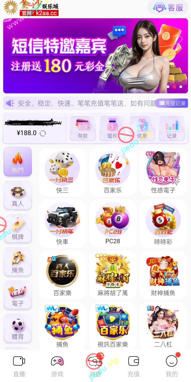 找客服碰瓷短信特邀188彩金看自己运气,没有就无视,没有就撒。