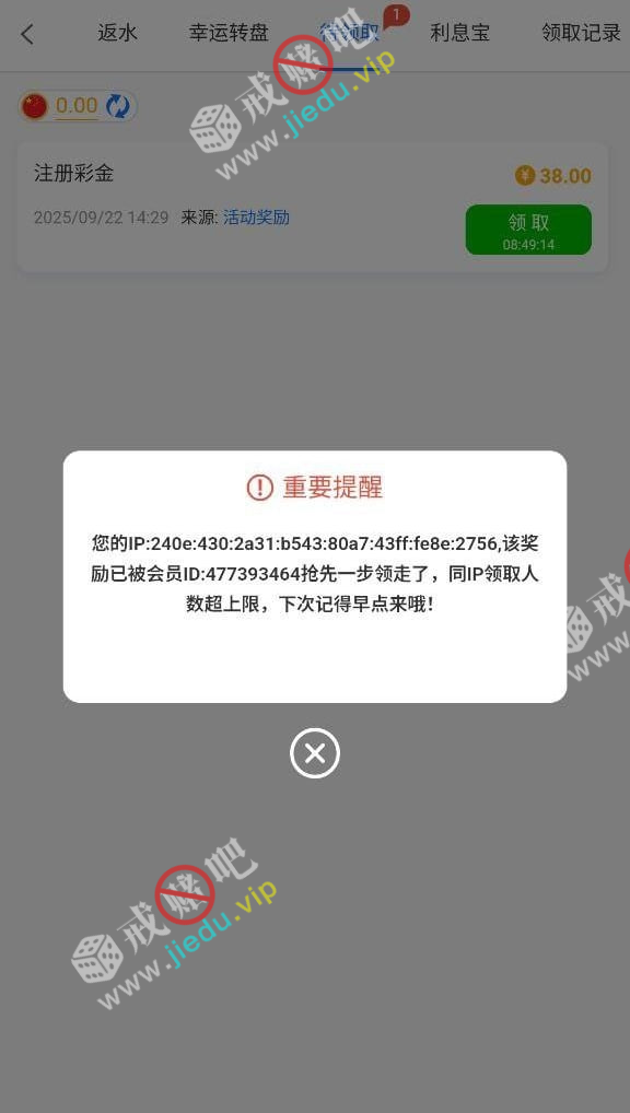 注册绑定手机号银行卡找客服说领取电话彩金如果要通话记录就随便给一个通话截图撸了俩个号第二个号领不了显示IP已领取 。
