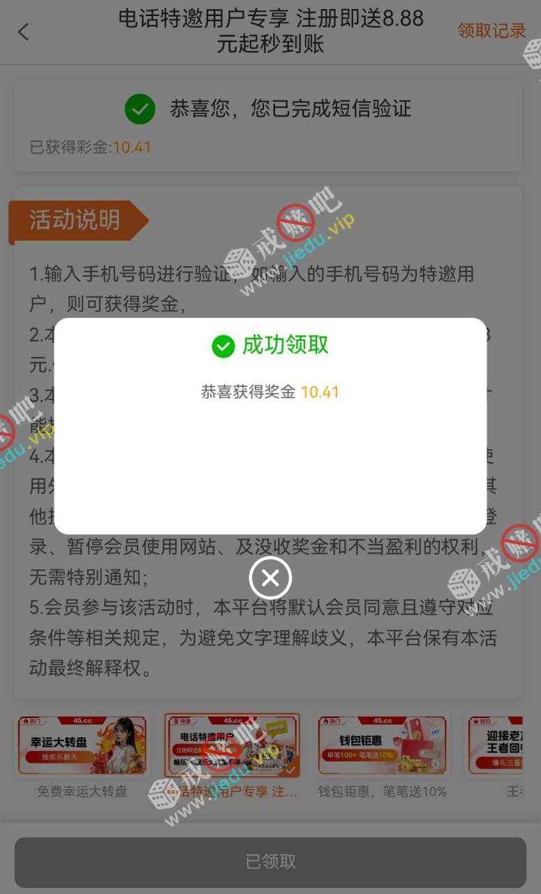 到账情况: 白嫖即可(勿充值)