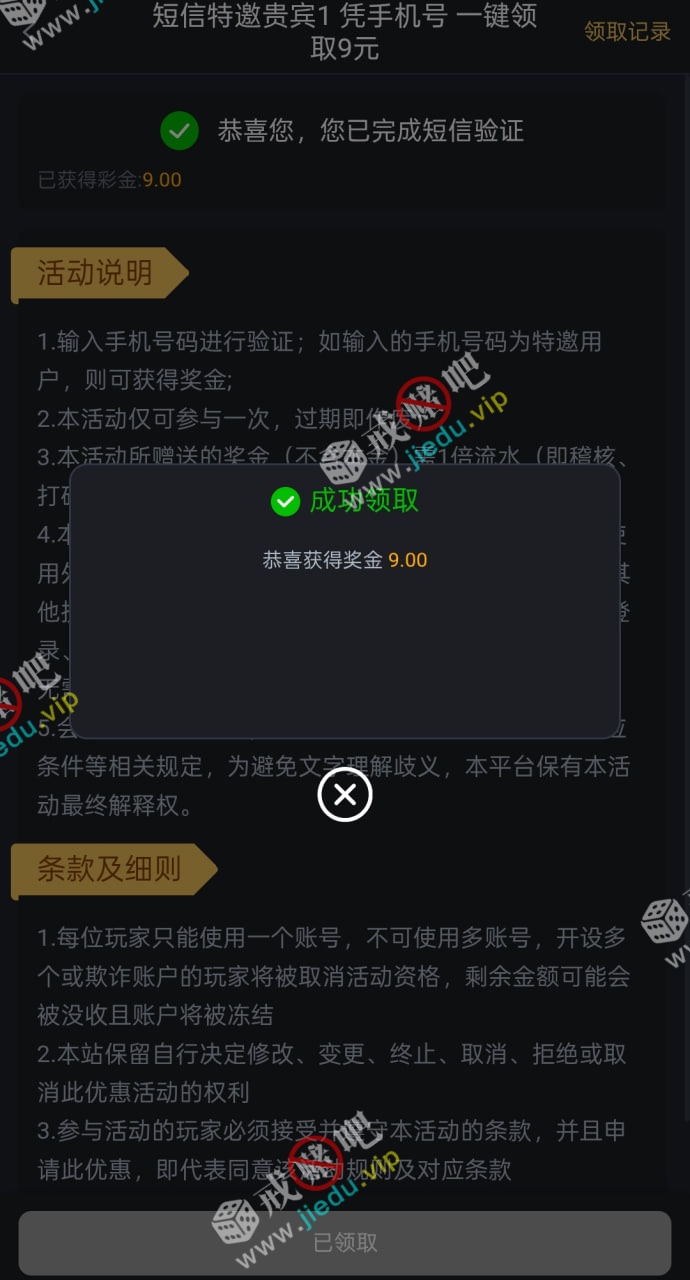我没收到什么的,我直接输入手机号试试的,我收接能接到验证码,领到了 9 块。