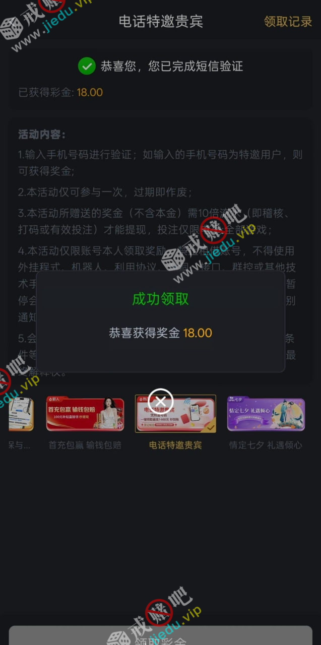 刚来的短信可以去碰瓷看看,自助领到了 18.