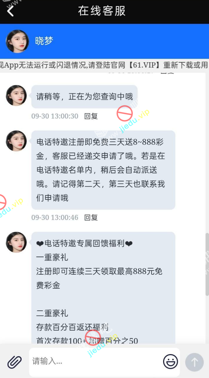 我接到电话的,说注册连送三天免费彩金,叫找在线客服说特邀注册彩金 。