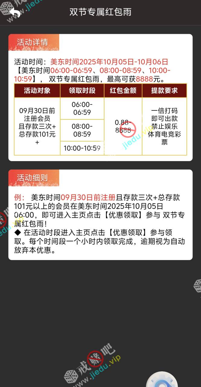 10月5号和6号下午6-8-10,三场红包雨。