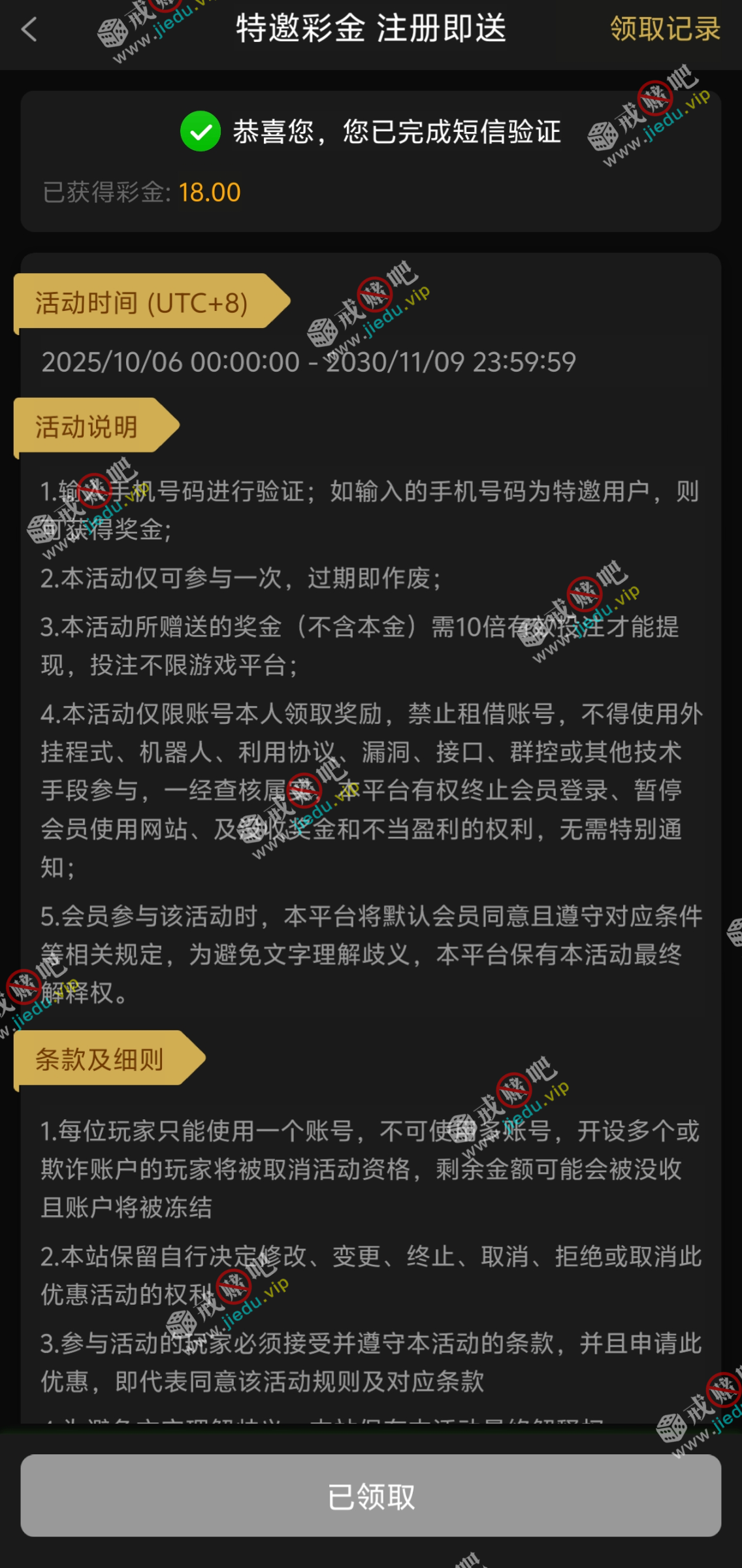 特邀注册送 18,不是靠自己的幸运,是靠手机号的!