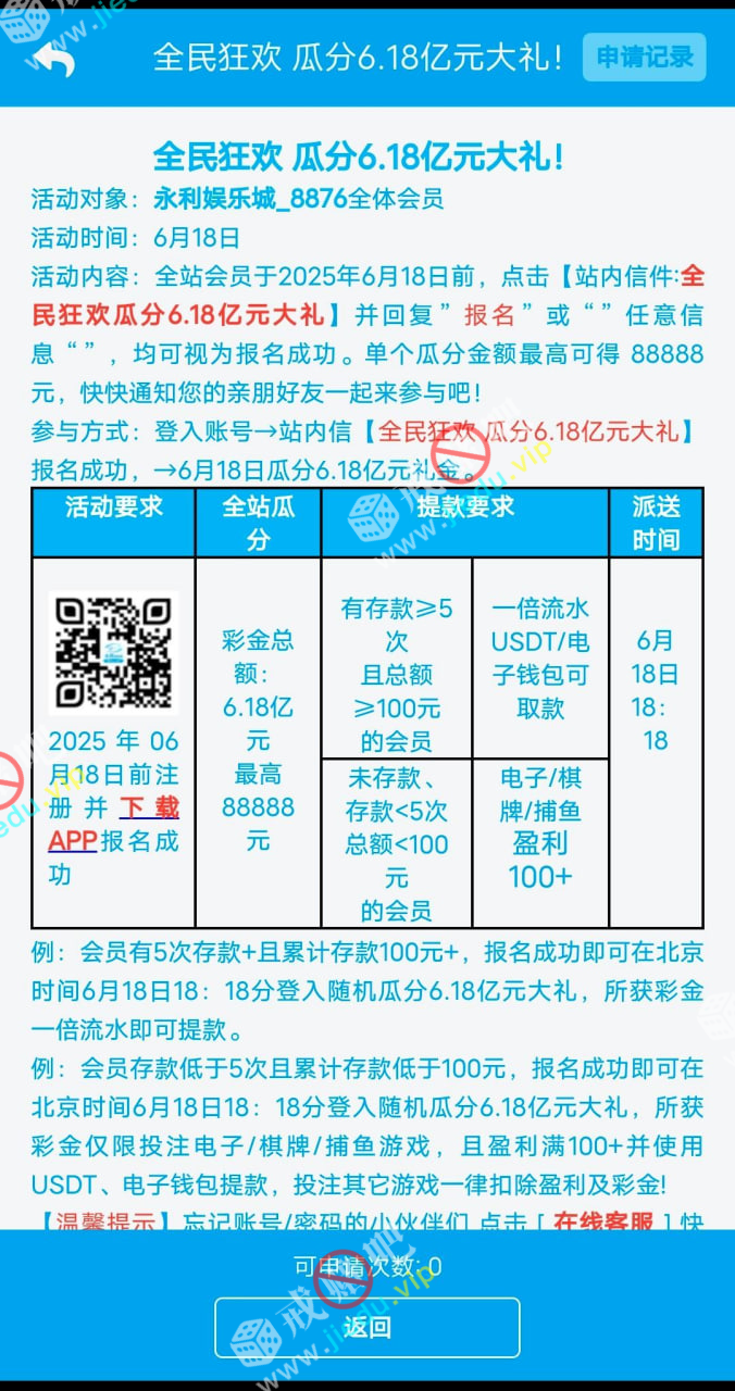 【永利8876】—✅— 6.18回馈彩金