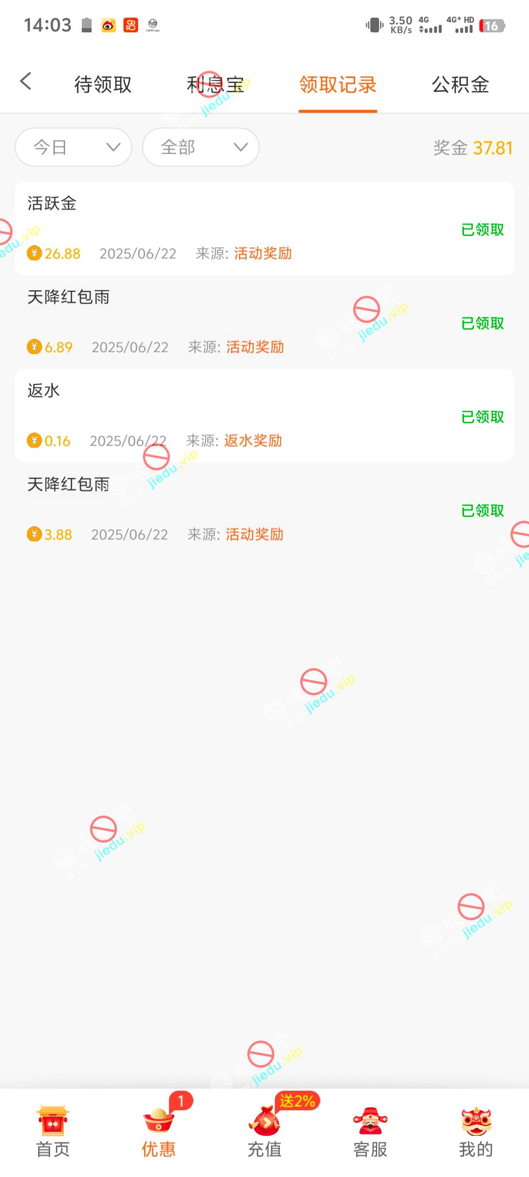 到账情况: 白嫖即可(勿充值)